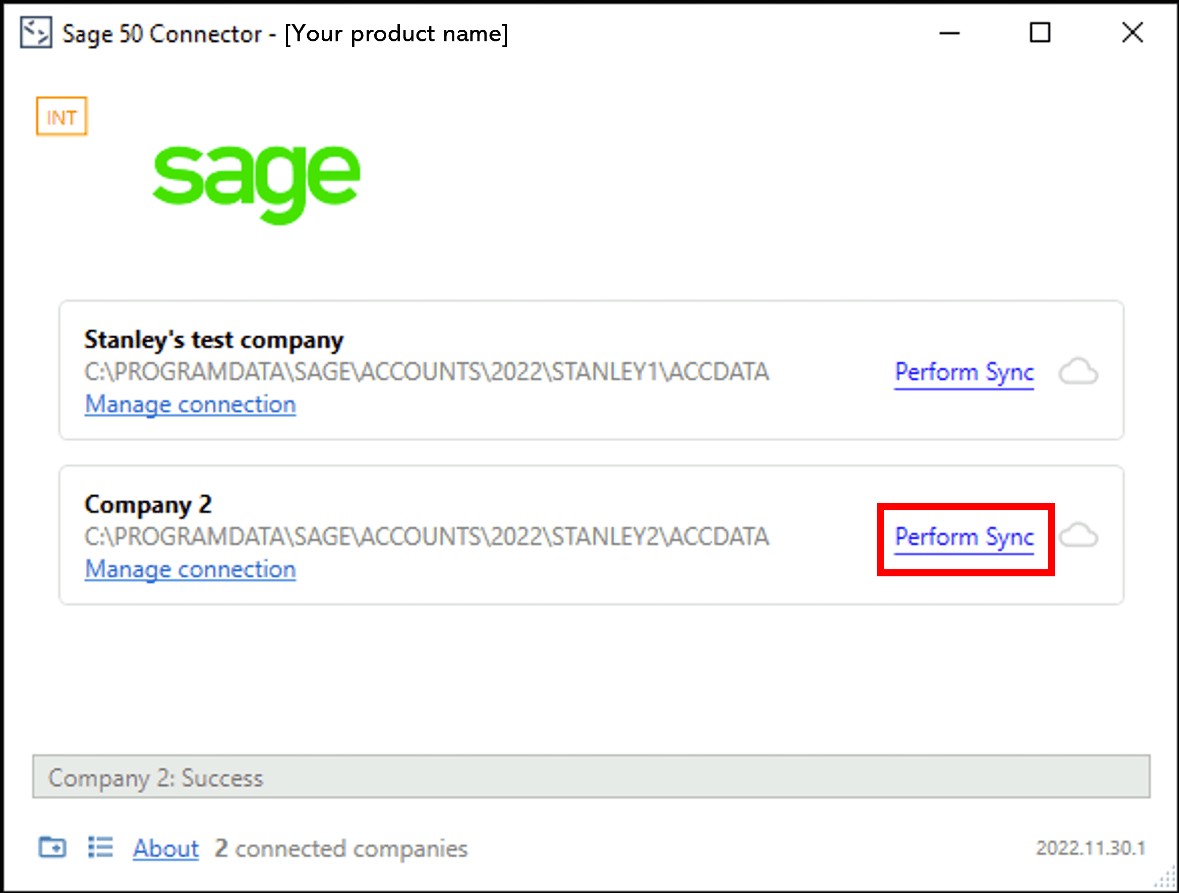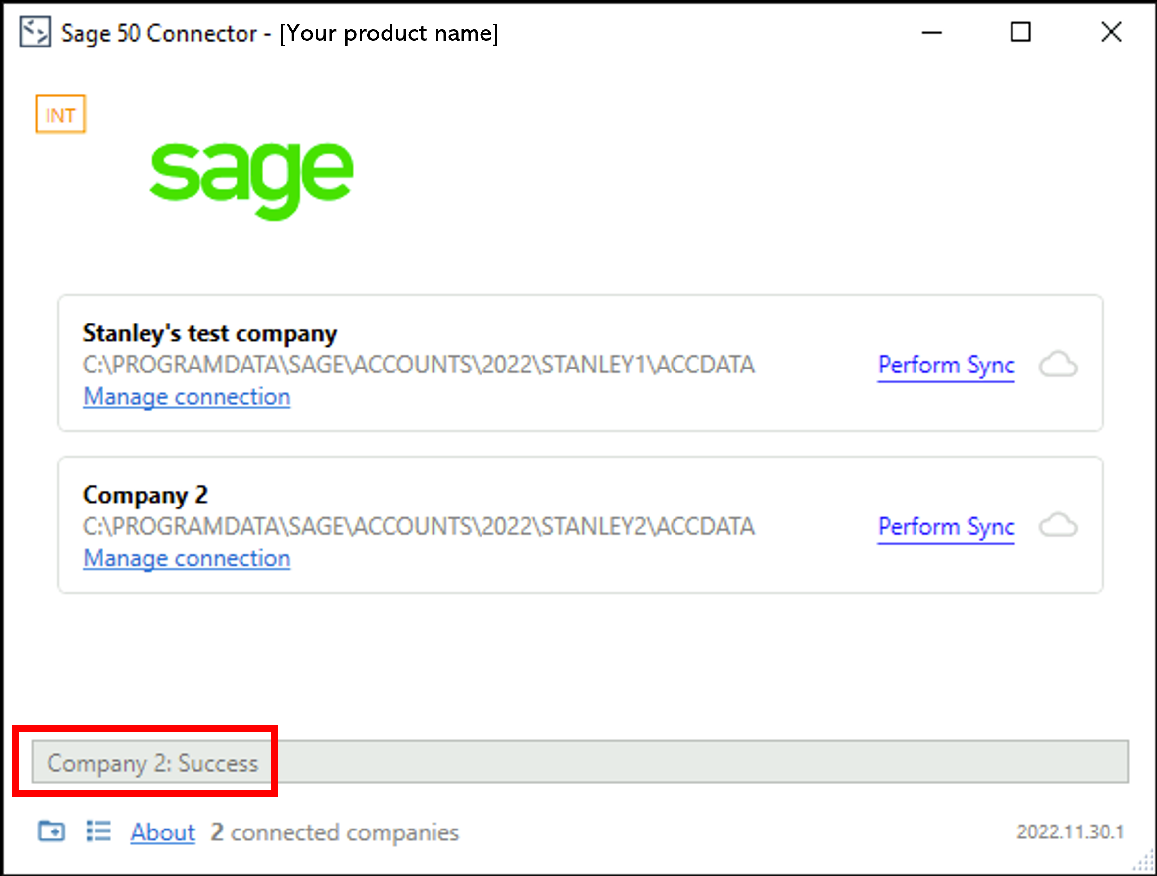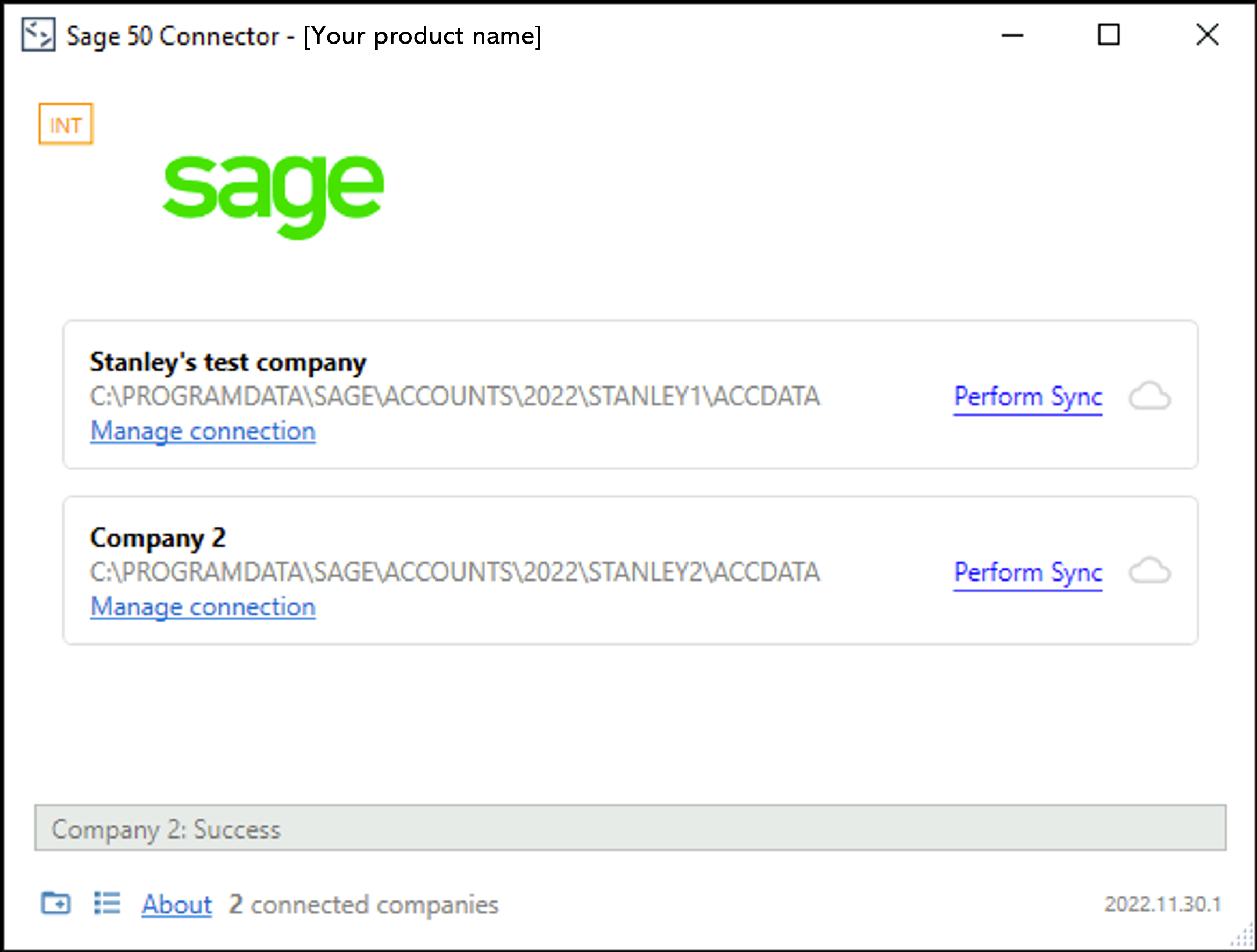 Example of the Sage 50 Accounts Connector with two connected companies: