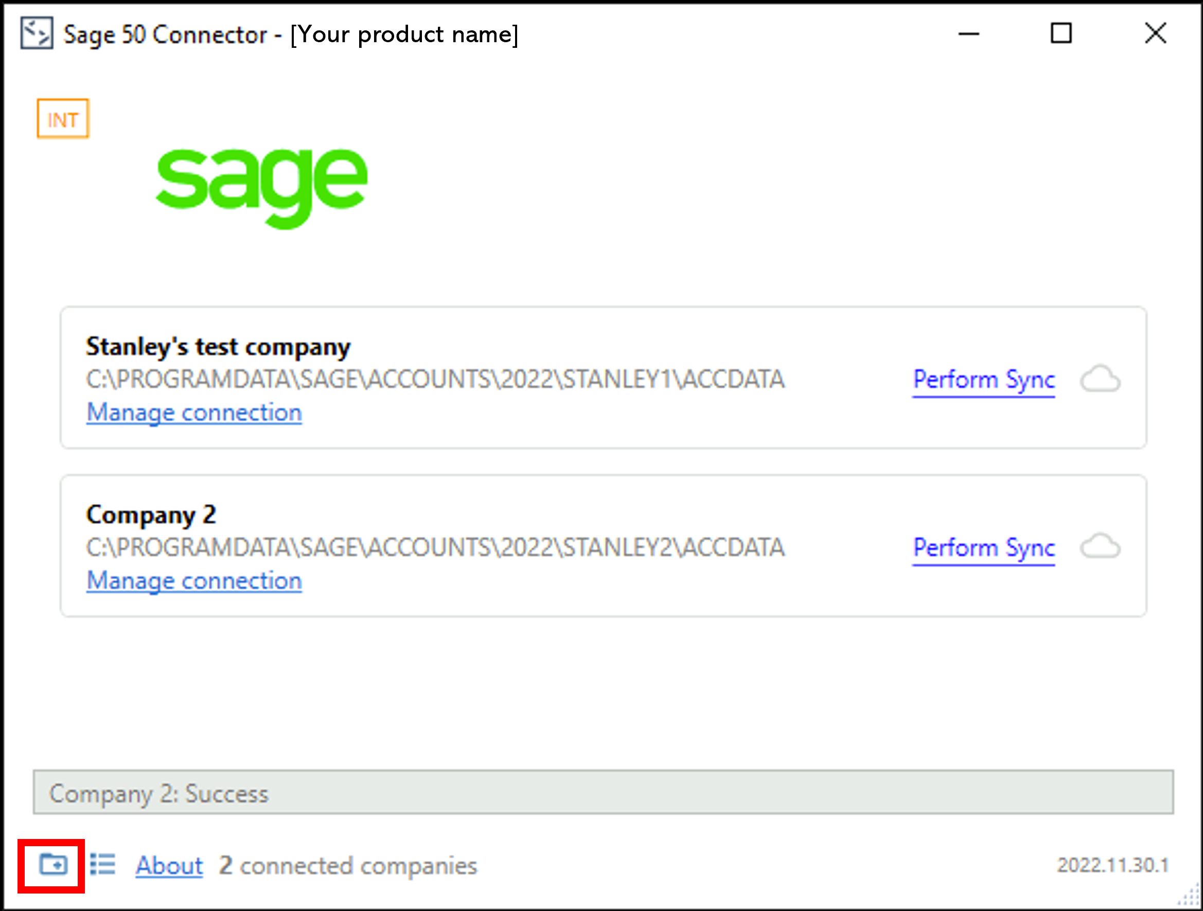 Right-click on the Sage 50 Accounts Connector tray icon (usually found in the bottom-right of the screen) and select Open Sage 50 Accounts Connector. This will display the connector, which is now in multi-company mode: