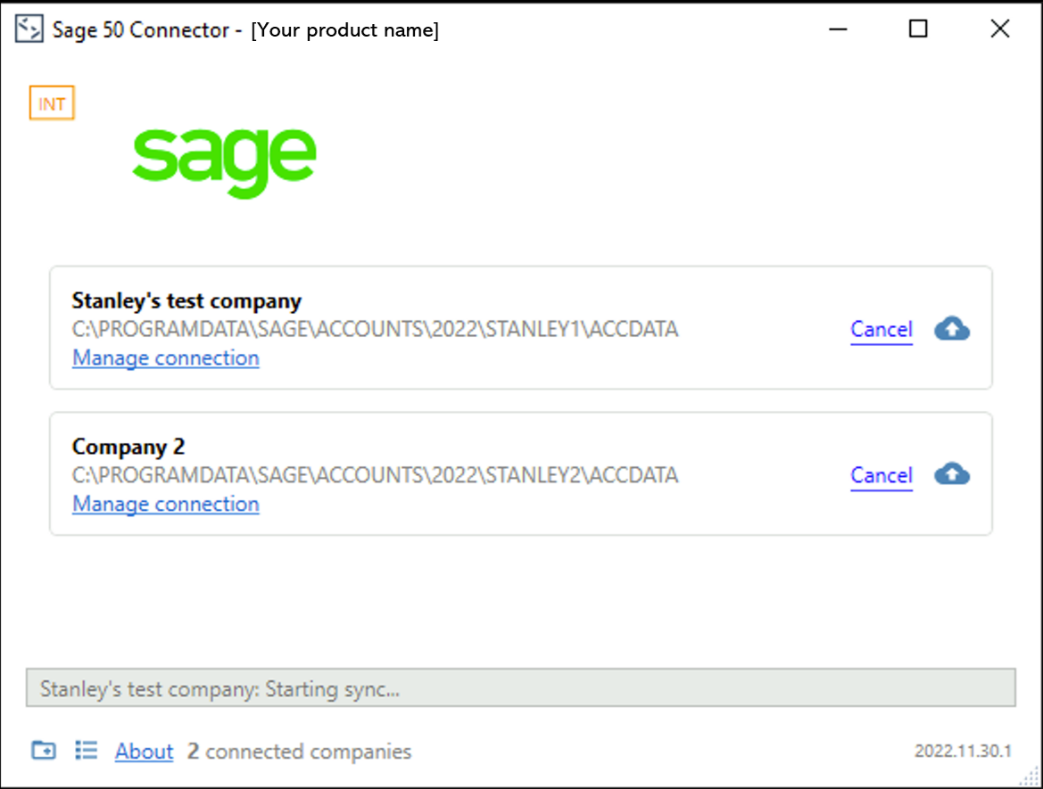 When multi-company mode is enabled in Sage 50, a single installed Sage 50 Accounts Connector can sync with multiple Sage 50 Accounts company data files.