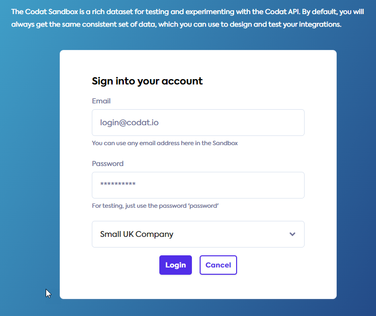 - Create a Codat company and connect it to the Codat Sandbox,